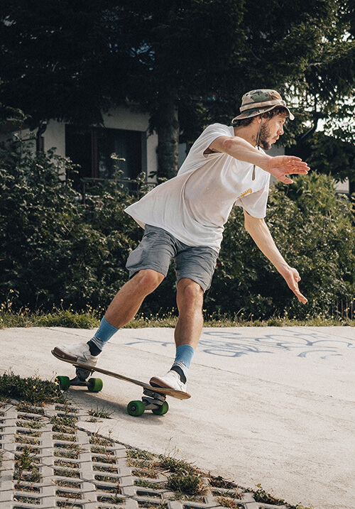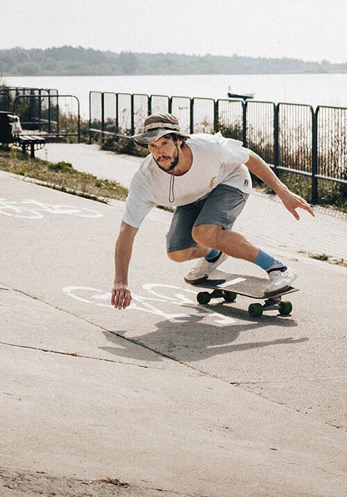 Deskorolka typu carver czy surfskate to doskonałe narzędzie do treningu pod surfing. Nawet gdy nie ma fal, jesteśmy w stanie skorygować pozycję, poprawić balans i popracować nad podstawowymi manewrami w surfingu, takimi jak; generowanie prędkości, bottom/top turn, cutback itp. Zostaw swojego maila, dołącz do naszych warsztatów surfskate i naucz się doskonalić technikę na lądzie!