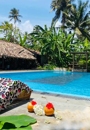 Nasz guest house to prawdziwa perełka przy samej plaży – z widokiem na fale i klimatem totalnego chillu. Otoczony rajskim ogrodem z dużym basenem, w którym można wskoczyć po sesji surf. Towarzystwo? Lokalne zwierzaki: kozy, pies, koty, a nawet… małpka i jaszczurka. Do wyboru przytulne pokoje prywatne 2, 3 lub 4-osobowe: każdy z własną łazienką. Idealne warunki, żeby odpocząć, naładować baterie i poczuć, że naprawdę jesteś w raju!