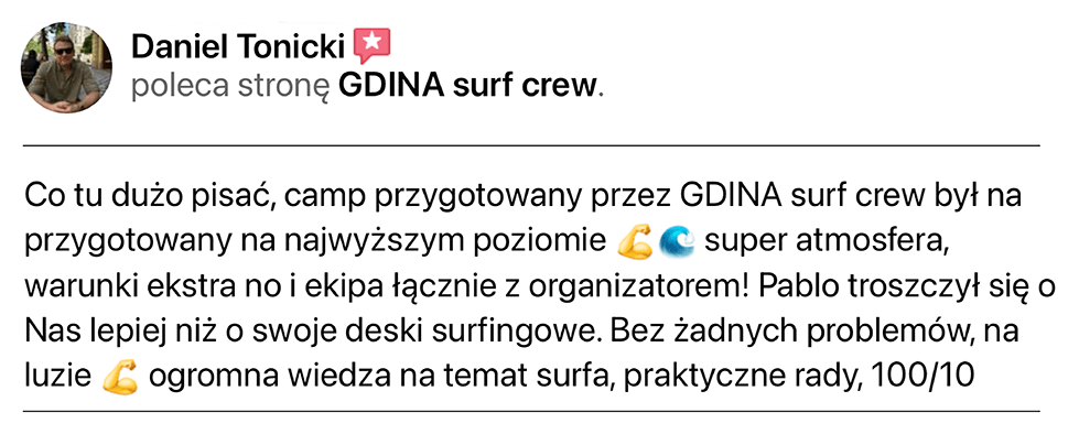 * szkolenie Surf nie odbywa się w dniu przyjazdu ani wyjazdu (zmiana turnusu)