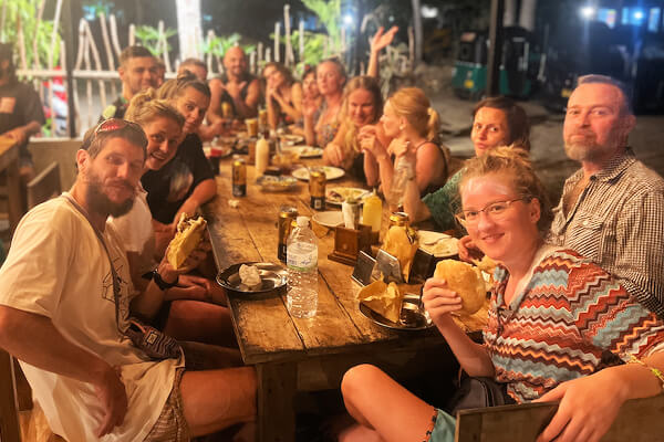 Surfing to dopiero początek! Na campie czeka Cię integracja z crew, świeże kokosy, lokalna kuchnia, wieczorne wyjścia, gastro tripy i codzienne opcjonalne wycieczki. Dla chętnych – safari i poranna joga w rytmie fal.